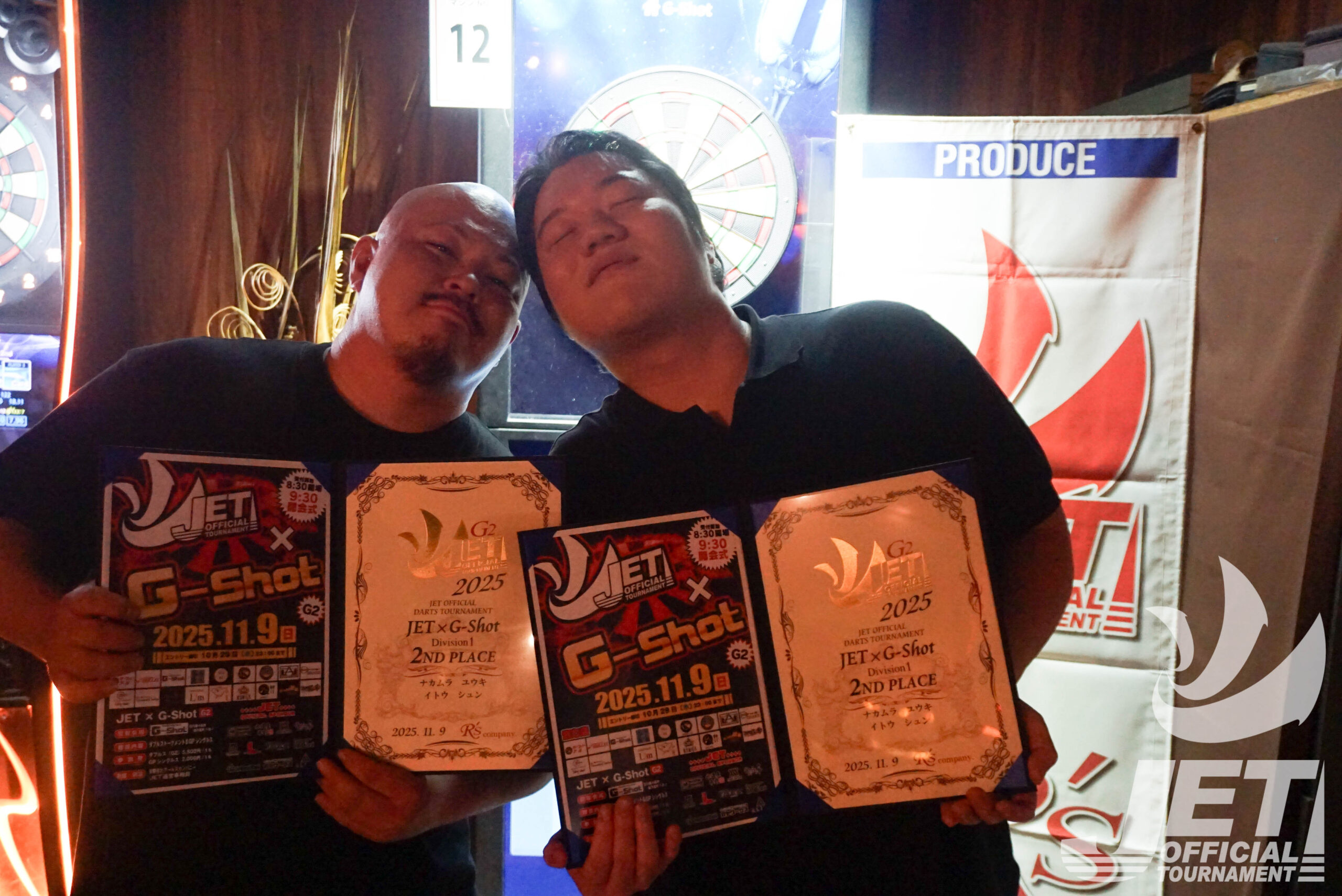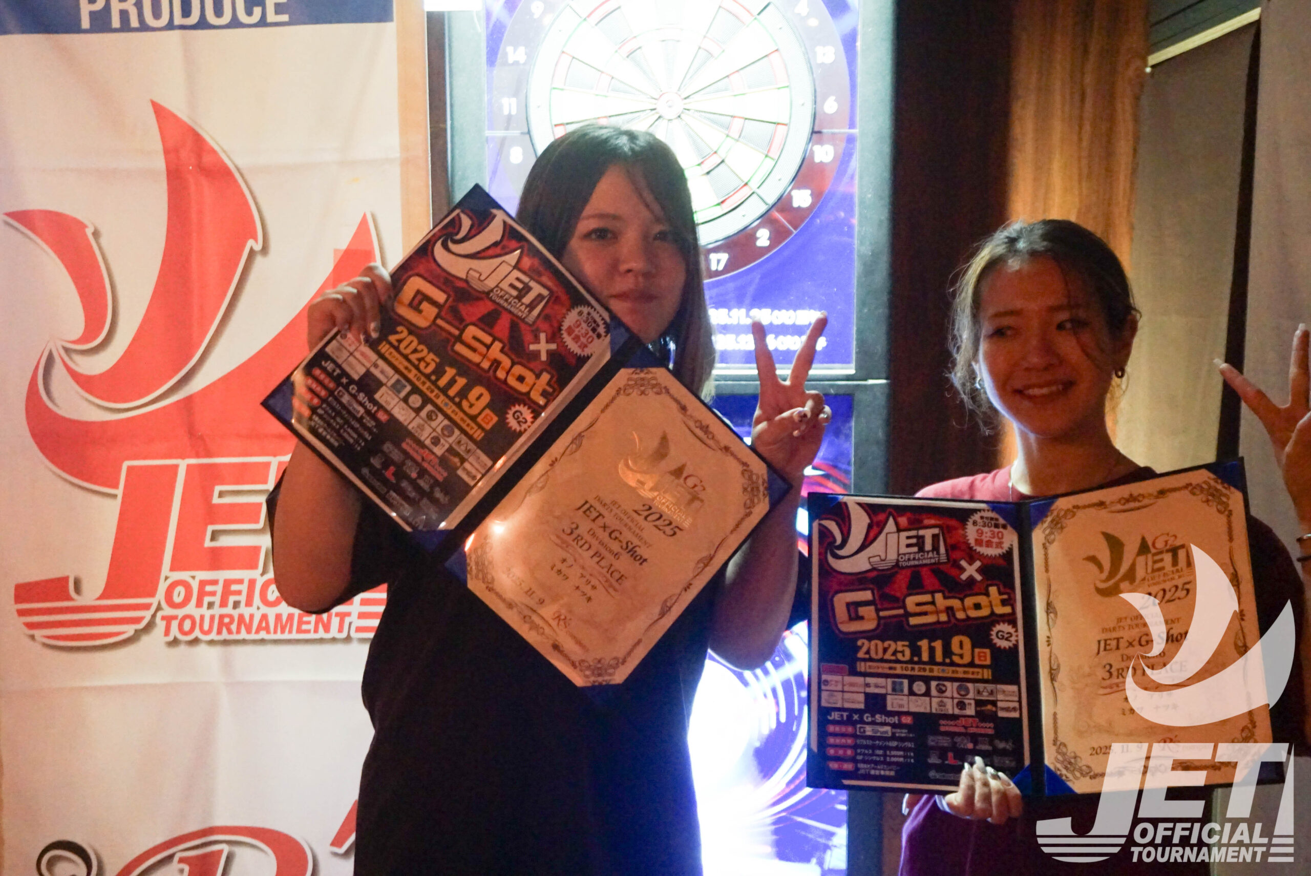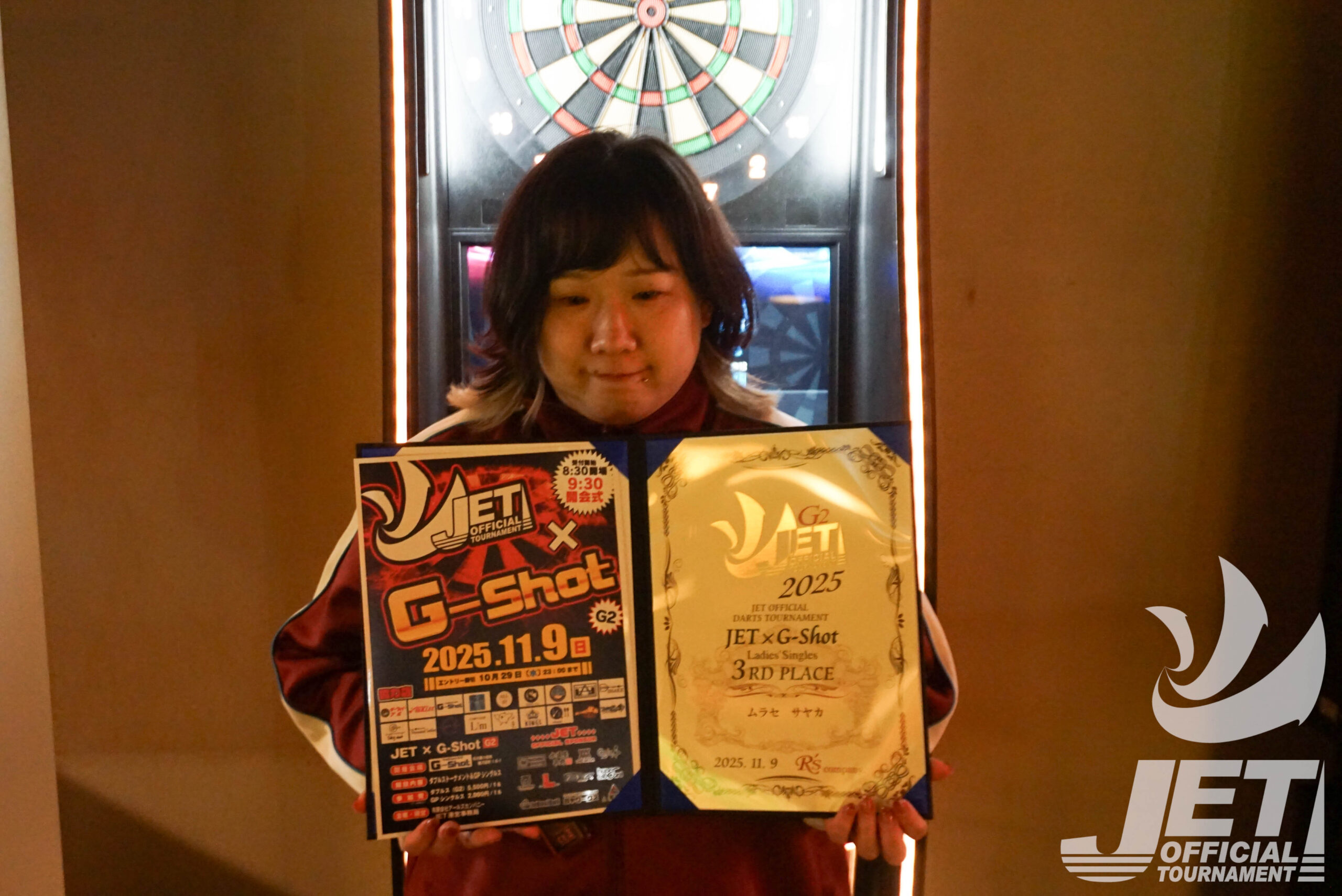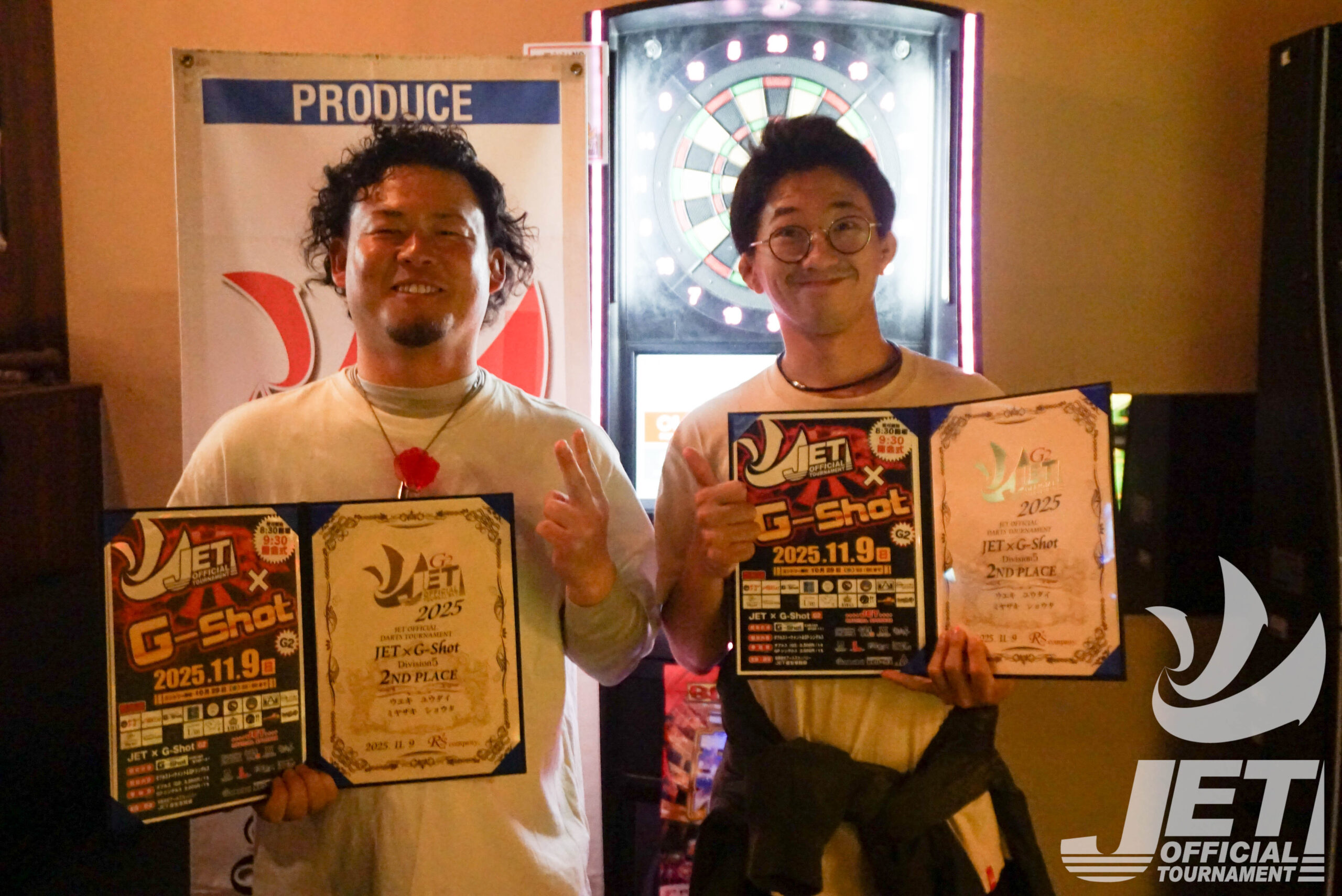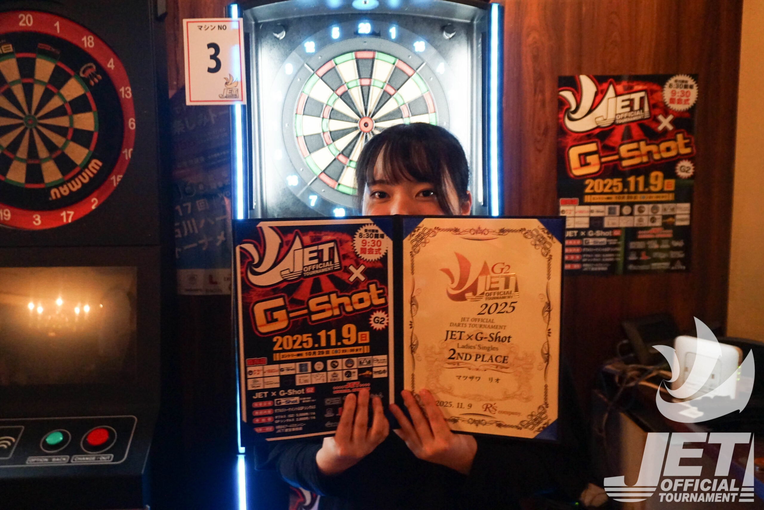 RESULTJET × G-Shot 男子GPシングル 優勝 ナカムラ ユウキ (80 pt) (FUN PLACES) 準優勝 シマザキ ユウスケ (64 pt) (Amuse&Drunk Hang out) 3位タイ ホンマ ユウト (51 pt) (FUN PLACES) 3位タイ タカハシ リョウ (51 pt) (ダーツショップ&Bar KINGS) 女子GPシングル 優勝 ナカムラ ユキコ (80 pt) (ダーツショップ&Bar KINGS) 準優勝 マツザワ リオ (64 pt) (BAR たらふく) 3位タイ ヒラタ ミキ (51 pt) (ruga) 3位タイ ムラセ サヤカ (51 pt) (FUN PLACES) DIVISION-1 優勝 イノ ショウキ ツキモリ カズヤ (16 pt) (Teru Cafe) 準優勝 ナカムラ ユウキ イトウ シュン (12 pt) (FUN PLACES) 3位タイ サイトウ カズヤ タガ カズヒロ (8 pt) (BAR たらふく) 3位タイ イナイ ヒロキ オガワ アキヒト (8 pt) (1/2 nibuichi) DIVISION-2 優勝 シマヤマ コウタロウ カワカミ マナブ (16 pt) (ダーツ&ビリヤード BAR バレット) 準優勝 ナエシロ ユウキ ナカガワ シホ (12 pt) (Darts Studio SPREAD) 3位タイ ババ コウイチ シラサキ サトシ (8 pt) (かじゅあるばぁ ぜろ。) 3位タイ シマザキ ユウスケ シマザキ サトカ (8 pt) (Amuse&Drunk Hang out) DIVISION-3 優勝 モリモト ヒロキ ナカジマ ユキ (16 pt) (かじゅあるばぁ ぜろ。) 準優勝 シマダ ユウイチロウ ホシナ セイジロウ (12 pt) (ダーツ&ビリヤード BAR バレット) 3位タイ タイラ ヤスヒト キタ マイコ (8 pt) (ダーツ&ビリヤード BAR バレット) 3位タイ スガハラ ヒロタカ タナカ ユウヤ (8 pt) (Boston Club) DIVISION-4 優勝 カスガ シンタロウ トビタ リナ (16 pt) (ruga) 準優勝 ハセガワ シンヤ イハラ タエコ (12 pt) (BAR たらふく) 3位タイ マスダ ショウスケ コバヤシ マサヤ (8 pt) (DARTS BAR Lim) 3位タイ フタギ カツキ アンドウ シュンヤ (8 pt) (DARTS&BAR Rodeo) DIVISION-5 優勝 ヨシタ ヨシフミ ヤマモト タイガ (16 pt) (darts×casualbar Stats) 準優勝 ウエキ ユウダイ ミヤザキ ショウタ (12 pt) (darts×casualbar Stats) 3位タイ オオヒラ ケイト アサクラ タイコウ (8 pt) (ダーツバー BULL) 3位タイ ホソイ ケン キハラ カヨコ (8 pt) (BAR たらふく) DIVISION-6 優勝 セキカワ アキラ セキカワ ユリコ (16 pt) (POOL&DARTSBAR G-Shot) 準優勝 マツイ ナナ アサダ ミレア (12 pt) (BAR たらふく) 3位タイ オノ アリア ミカワ ナツキ (8 pt) (POOL&DARTSBAR G-Shot) 3位タイ スエマサ リュウジ ムライ ケンタロウ (8 pt) (BAR たらふく) 2026 JET OFFICIAL SPONSORS Facebook JET DARTS Tournament Instagram JET2026 開幕戦! 2026年 2月 1日(日) 【 JET in 西川口 】G2 会場:LI 現在 2大会のエントリー受付開始しております JET2026 開幕戦! 2026年 2月 1日(日 JET2026 始動! ~エントリー方法が変わりました~ 本年度よりエントリーがスマートフォンより可 【 JET OFFICIAL DARTS TOURNAMENT 2025 】 お世話になっております JET2026 開幕戦! 2026年 2月 1日(日) 【 JET in 西川口 】G2 会場:LI 【 JET2025 全日程終了 】 ~ランキング確定しました~ 入賞された皆様、そして店舗様、 おめ JET2025 全日程終了 ~JETポイントランキング更新しました~ JET in 東京×hyper JET2025最終戦! 12月 14日(日) 【 JET in 東京×hyperelectra 】G JET2025最終戦! 12月 14日(日) 【 JET in 東京×hyperelectra 】G 公式Instagramをフォロー ホーム JETについて 大会規約 大会日程 大会結果 ランキング JETプレイヤー ギャラリー お問い合わせ