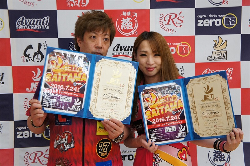 | 優勝 サワヤナギ ミツヒコ ミタニ アキコ (100%FAMILY - 14 pt) | 準優勝 シズク ユウタ タカハシ ダイスケ (ダーツ部KENU - 10 pt) | 3位タイ タチバナ ヨシヒロ サカエ ケイスケ (Revolver 新松戸店 - 6 pt) | 3位タイ チャバタ フミアキ カネコ サチヨ (Sports Cafe KAZ - 6 pt) |