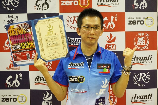 | 優勝 スズキ トオル (120 pt) (Avanti) | 準優勝 タケモト ヨシノブ (90 pt) (Avanti) | 3位タイ ニシマキ リュウタ (68 pt) (Zero-1 darts 新潟店) | 3位タイ シマザキ ユウスケ (68 pt) (NEXT) |