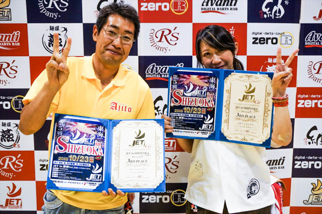 | 優勝 シミズ ヨシヒロ マガミ ユミコ (zero-R - 10 pt) | 準優勝 ヒロセ ゲンタ オクヤマ イッコウ (AMUSEMENT SPACE SEVEN - 16 pt) | 3位タイ シキ ユリカ タドコロ ケン (digital darts court R - 12 pt) | 3位タイ フナハシ タカミツ ヤマモト タカト (お酒とダーツALOHA - 12 pt) |